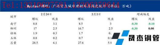 本周广西地区螺纹资源社会库存整体下降,商家出货好转。进入3月,向日葵色视频在线观看无缝钢管原料消息面有所放宽,需求复苏,整个黑色系期货近期首次出现全面大幅拉涨,市场看涨氛围浓厚,给予市场较大的操作空间。同时,在期货的刺激下广西本地需求进一步释放,周二商家迎来了出货拐点,当天成交爆发式增长,为后续成交奠定基础。从资源分配来看,南宁区域由于部分商家的资源从厂里直发进入工地,进入仓库资源相对有限,因而南宁库存出现小幅度下降。同时,柳钢本部生产饱和度较低,广西投放资源有限,柳州社会库存也出现不增反降局面。价格方面,无缝向日葵色视频在线观看钢管厂家出厂价推涨及时,本周截至周四广西推涨90元/吨,但从周边市场来看,广西价格处于低位,周边资源流入利润空间较少,整体流入量有所下降。截至目前,广西市场库存建筑向日葵色视频在线观看无缝钢管33.58万吨,较上周相比减少1.02万吨。