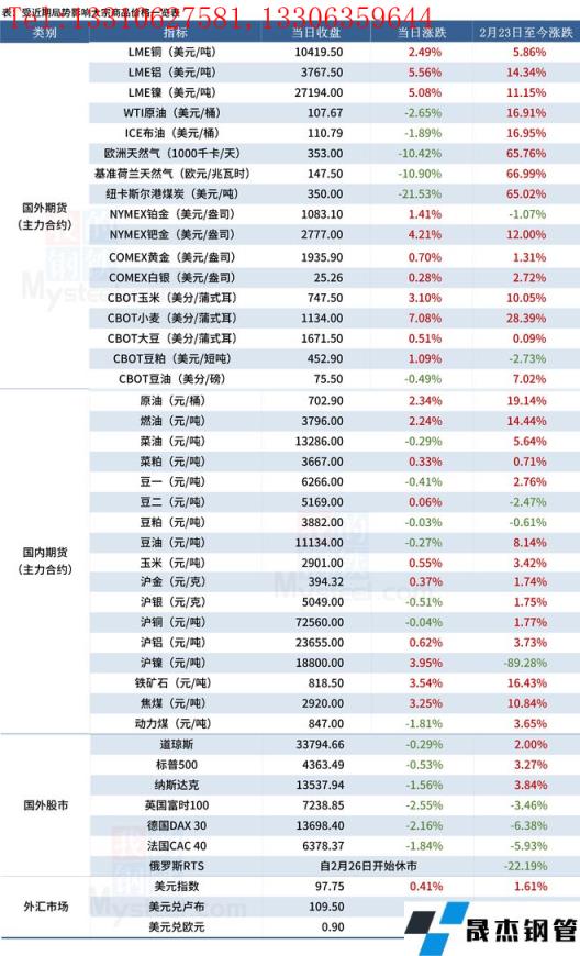 免责声明:本网站(山东聊城向日葵视频网站无缝钢管厂www.dianmore.com)刊载的“受近期局势影响大宗商品价格一览表(3月3日)”等均源于网络,版权归原作者所有,且仅代表原作者观点,本文所载信息仅供参考。转载仅为学习与交流之目的,如无意中侵犯您的合法权益,请及时联系删除。本网站刊登此篇文章并不意味着本站赞同其观点或证实其内容的真实性,向日葵视频网站不对其科学性、严肃性等作任何形式的保证。如果侵犯了您的版权,请尽快联系向日葵视频网站予以撤销,谢谢合作!