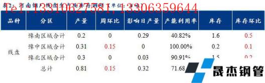 1、调研数据显示,统计的河南地区10家建筑向日葵色视频在线观看无缝钢管样本无缝向日葵色视频在线观看钢管厂家中,河南省无缝向日葵色视频在线观看钢管厂家线盘日均产量0.81万吨,较上周小幅增加0.15万吨;检修/限产影响建材日产量为0.32万吨,产能利用率71.68%,较上周上升13.27%。