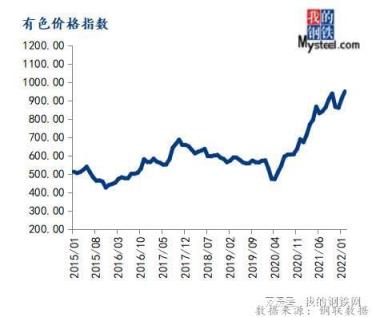 2月份有色价格指数为949.46,环比上涨4.23%,同比上涨33.23%。