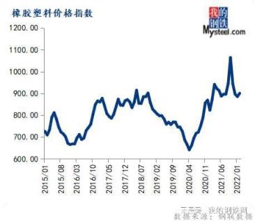 2月份橡胶塑料价格指数为900.76,环比上涨1.73%,同比上涨3.17%。
