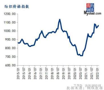 2月份纺织价格指数为1062.07,环比上涨1.48%,同比上涨16.91%。