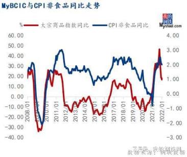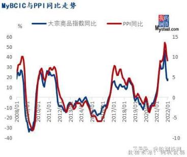 2022年2月份,上海钢联中国大宗商品价格指数(MyBCIC)终值为1215.74,同比上涨17.93%,环比上涨2.36%。