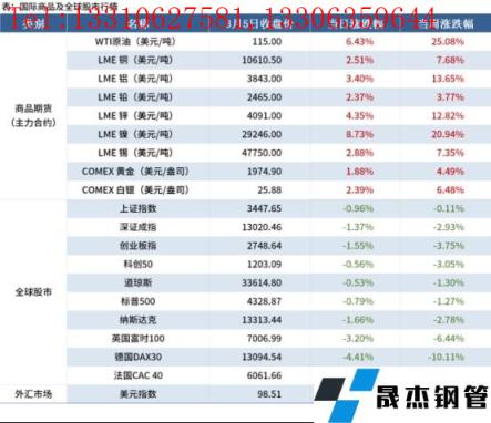 金融市场:本周主要商品期货全部上涨,WTI原油大涨25.08%。全球股市全部下跌,欧洲股市跌幅靠前;美元指数98.51,上涨2.04%。