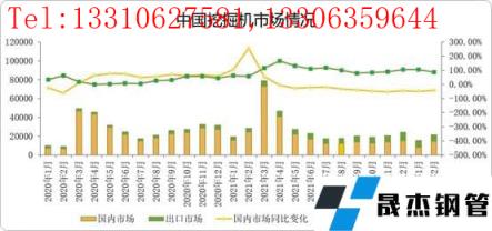 据市场情况了解到,2月份国内市场预估销量15000台,国内市场销量增速降幅小幅收窄;出口市场预估销量7000台,增速87%左右。按照三月份的调研数据显示,预计国内工程机械市场仍然按照年度周期性进入旺季。一季度的年度旺季的起始点在2月15日左右市场才有所启动,2月整体的挖掘机市场情况环比情况好转,节后需求逐步恢复,基建下行压力缓解。当前受国际形势影响,挖机机的市场国内外分配情况情况存在变动,整体趋势走向还是向上为主。