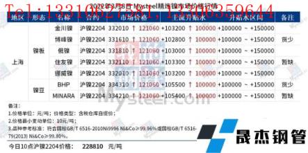 国内下游合金企业主要是消费金川镍为主,金川国有企业背景,3月8日出厂价241850元/吨,低于市场俄镍及镍豆33-35万元/吨价格。