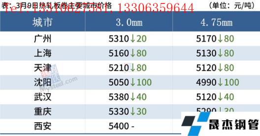 冷轧板卷:3月9日,全国24个主要城市1.0mm冷卷均价5708元/吨,较上个交易日下跌5元/吨。随着黑色系震荡走弱,市场价格步入下行通道,广州、南昌、杭州等地率先下调价格,其余市场则多暗降出货。下游“买涨不买跌”心态明显,多持观望态度,谨慎拿货。综合来看,故预计10日国内冷轧板卷价格或将继续偏弱运行。