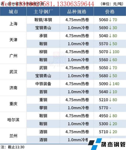 ◎乐从:10日早盘热卷市场价格下跌100,4.75以上普柳燕5070-5080,2.75普5280-5430锰5250-5270。(单位:元/吨)