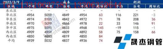 独立电弧炉建筑向日葵色视频在线观看无缝钢管无缝向日葵色视频在线观看钢管厂家周度成本调研(2022年3月9日)(单位:元/吨)