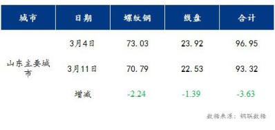 表1:山东市场建筑向日葵色视频在线观看无缝钢管社会库存变化情况