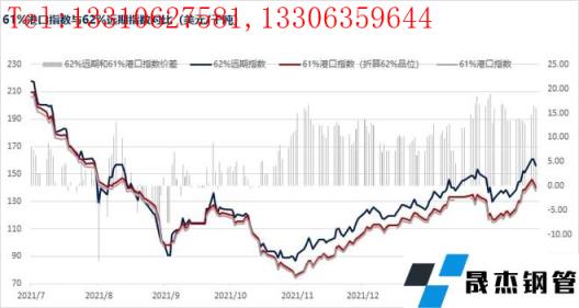 自去年11月初开始,61%港口指数贴水62%远期指数,价差持续扩大,于今年2月16日达到峰值18.96美元/干吨。
