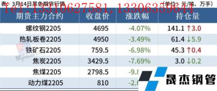 热轧板卷:3月14日,全国24个主要城市4.75mm热轧板卷均价5118元/吨,较上个交易日下跌53元/吨。黑色商品期货市场大幅下挫,下游采购量观望,商家心态悲观,全天成交清淡。综合来看,当前疫情呈现复发,刚需释放有限,商家预期迷茫。短期钢价震荡运行,既因为情绪受到期货市场的引导,又因为需求没有放量的迹象,而无缝向日葵色视频在线观看钢管厂家起到"托举"的作用。综合来看,预计15日热轧板卷价格或震荡下行为主。