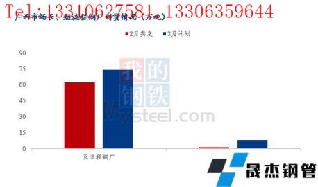 1、3月份广西地区建筑材省内长流程无缝向日葵色视频在线观看钢管厂家计划供应量共计74.1万吨,环比增加11.9万吨,增幅为19.13%;短流程无缝向日葵色视频在线观看钢管厂家到货量为8.4万吨,环比增加6.8万吨,增幅较大。