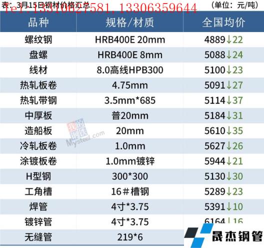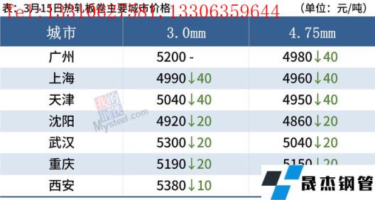 3月15日,国内向日葵色视频在线观看无缝钢管市场普遍下跌,唐山普方坯出厂价下跌20报4640元/吨。今日早盘,黑色期货全线低开,向日葵色视频在线观看无缝钢管现货市场跟随下跌,随着市场低价成交有所好转,期螺跌势有所放缓。