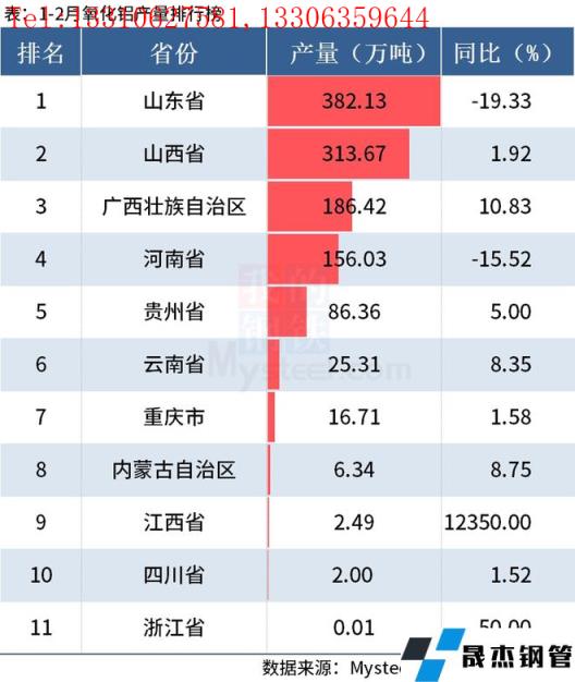 免责声明:本网站(山东聊城向日葵视频网站无缝钢管厂www.dianmore.com)刊载的“统计局:1-2月全国分省市铝材、氧化铝产量出炉”等均源于网络,版权归原作者所有,且仅代表原作者观点,本文所载信息仅供参考。转载仅为学习与交流之目的,如无意中侵犯您的合法权益,请及时联系删除。本网站刊登此篇文章并不意味着本站赞同其观点或证实其内容的真实性,向日葵视频网站不对其科学性、严肃性等作任何形式的保证。如果侵犯了您的版权,请尽快联系向日葵视频网站予以撤销,谢谢合作!