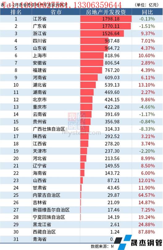 分别整理了1-2月各省市房地产开发投资情况、各省市房地产开发规模与开,竣工面积增长情况,具体如下: