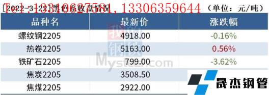 截至3月22日收盘,螺纹钢2205收4918元/吨,跌0.16%;热卷2205收5163元/吨,涨0.56%;铁矿石2205收799元/吨,跌3.62%。