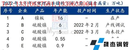 随着新能源产业的高速发展,市场对镍需求增长,高冰镍作为硫酸镍原料的作用也被重视起来。预计2022年上半年,国内可处理高冰镍的设备产能镍金属量1.34万吨/月。