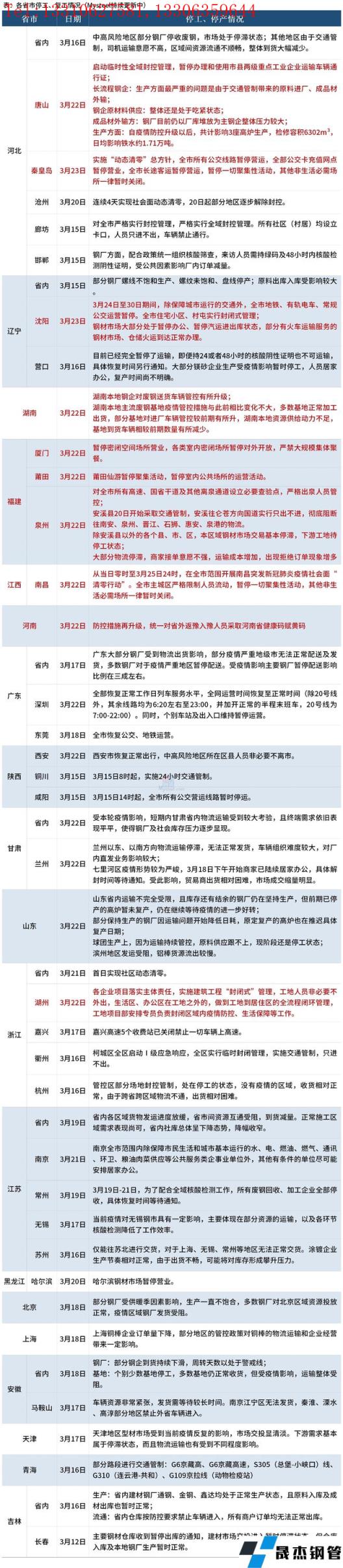 其中,3月22日,唐山市启动临时性全域封控管理,暂停办理和使用市县两级重点工业企业运输车辆通行证。沈阳于3月24日至30日期间,除保障城市运行的交通外,全市地铁、有轨电车、常规公交运营暂停,全市住宅小区、村屯实行封闭式管理;向日葵色视频在线观看无缝钢管市场大部分处于暂停办公、暂停汽运进出库状态,部分有火车运输服务的向日葵色视频在线观看无缝钢管市场、仓储火运到达正常办理。3月20日福建泉州安溪县开始采取交通管制,除安溪县以外的各个县、市、区,本区域向日葵色视频在线观看无缝钢管市场交易基本停滞,下游工地待停工状态。具体情况如下: