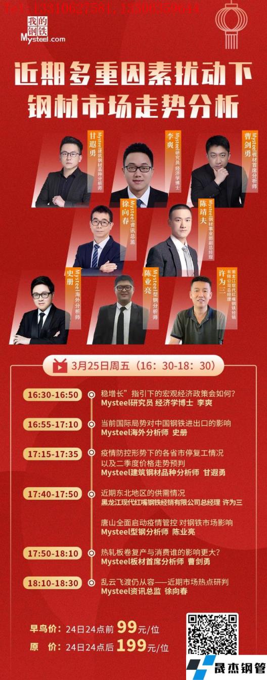 3月25日周五下午16:30,黑龙江现代红嘴钢铁经销有限公司总经理许为三、资讯总监徐向春、经济学博士研究员李爽、板材首席分析师曹剑勇、建筑向日葵色视频在线观看无缝钢管品种分析师甘遐勇、型钢分析师陈业亮及国际钢铁市场分析师史册,将做客直播间,聊一聊近期多重因素扰动下对钢铁市场的影响有哪些?