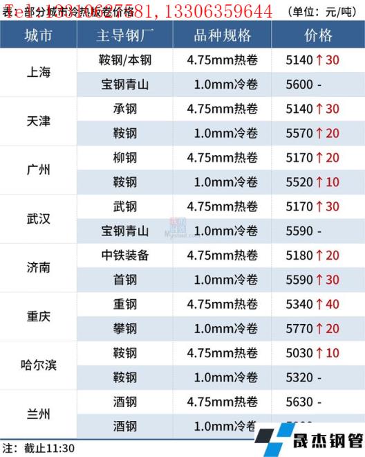 ◎乐从:24日早盘热卷市场价格上涨20,4.75以上普柳燕5170-5180,2.75普5350-5520锰5350-5370。(单位:元/吨)