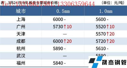冷轧板卷:3月24日,全国24个主要城市1.0mm冷卷均价5656元/吨,较上个交易日上涨10元/吨。今日早间市场报价纷纷上涨20-30元/吨,询单人数明显增加,但由于疫情影响,需求持续疲软,多数市场存在暗降优惠现象,贸易商以出货回笼资金为主,心态较为谨慎。库存方面,据不完全统计,现冷轧无缝向日葵色视频在线观看钢管厂家库存38.68万吨,周环比增加4.74万吨,社会库存140.37万吨,周环比减少2.75万吨,周消费量81.67万吨,环比减少1.45万吨。综合来看,故预计25日国内冷轧板卷价格或将盘整运行。