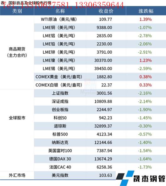 ◎安赛乐米塔尔2022年一季度自有铁矿石产量为1200万吨,环比减少10.45%;一季度粗钢产量1630万吨,环比减少1.21%;一季度向日葵色视频在线观看无缝钢管发运量为1530万吨,环比减少3.16%。