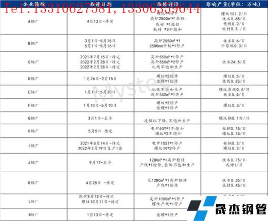 附:江苏省无缝向日葵色视频在线观看钢管厂家库存及检修情况