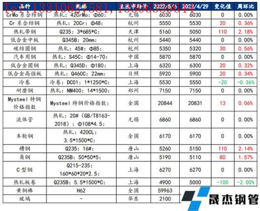 核心观点:上周向日葵色视频在线观看无缝钢管市场整体小幅上涨,五一假期前后,市场存在小幅度的需求放量,叠加节前现货成本普遍偏高,因此现货价格多数在节后小幅上涨;另一方面,市场对于疫情缓解后的需求释放情况保持乐观,因此从预期方面而言也多以看涨较多;在有色方面,整体下游行业消费不及预期,铜、铝上周价格有所下滑,市场整体呈现较为弱势。