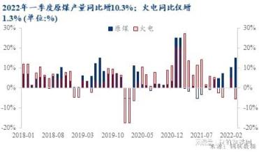 回顾2022年一季度我国煤炭及电力供需形势发现,国内能源生产保障能力大幅增强:一季度全国原煤产量累计生产10.8亿吨,同比增长10.3%。