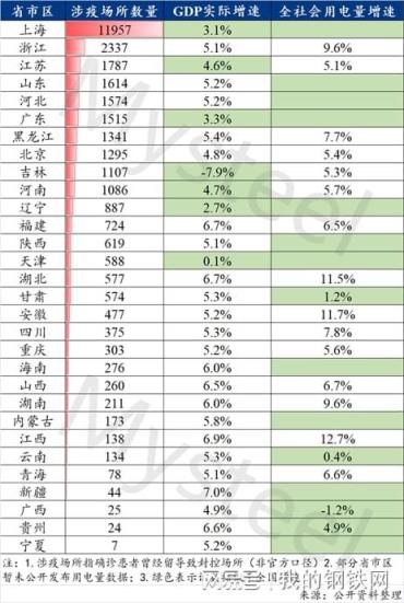 表1.截至5月7日全国省份涉疫场所数量与一季度GDP、用电量增速排名