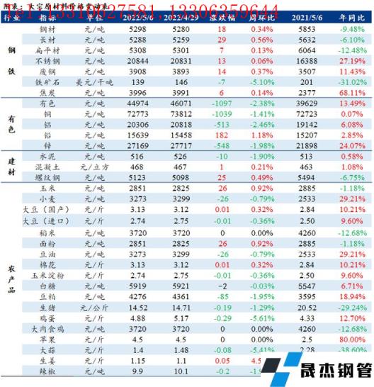 免责声明:本网站(山东聊城向日葵视频网站无缝钢管厂www.dianmore.com)刊载的“周报:大宗工业原材料、能源及农产品价格周报(4.29-5.06)”等均源于网络,版权归原作者所有,且仅代表原作者观点,本文所载信息仅供参考。转载仅为学习与交流之目的,如无意中侵犯您的合法权益,请及时联系删除。本网站刊登此篇文章并不意味着本站赞同其观点或证实其内容的真实性,向日葵视频网站不对其科学性、严肃性等作任何形式的保证。如果侵犯了您的版权,请尽快联系向日葵视频网站予以撤销,谢谢合作!