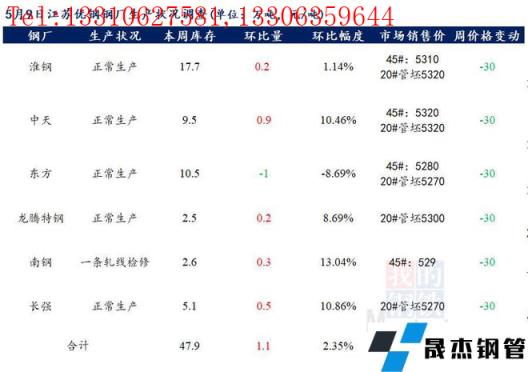 江苏优特无缝向日葵色视频在线观看钢管厂家棒材总库存47.9万吨,较上周增加1.1万吨,环比增2.35%,较去年同期上升10.48万吨,同比增28.01%。