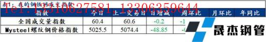讯:全国建筑向日葵色视频在线观看无缝钢管成交量监测,成交量相对指数来看,全国60.4增0.2,北方41减1.9,华东86.9增0.9,南方45.5减0.3。今日螺纹钢价格指数5025.5,较上一交易日减48.85。