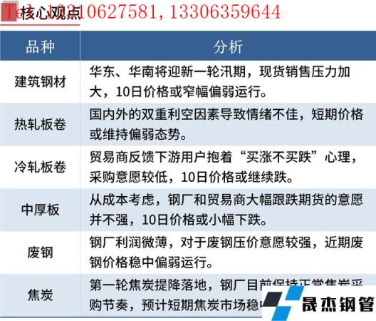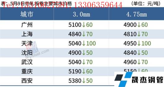 热轧板卷:5月9日,全国24个主要城市4.75mm热轧板卷均价5067元/吨,较上个交易日下跌60元/吨。综合来看,美联储加息和缩表落地限制了国内货币宽松的空间,国内多地区疫情爆发,国内外的双重因素导致情绪不佳,无缝向日葵色视频在线观看钢管厂家目前面临亏损的局面,焦煤焦炭的首轮提降已经落地,原料端价格支撑进行弱化,原料与成材呈现负反馈。预计下半年经济冲击影响依旧,短期成材或将维持偏弱态势。因此,预计全国热轧板卷10日价格维持下行趋势。