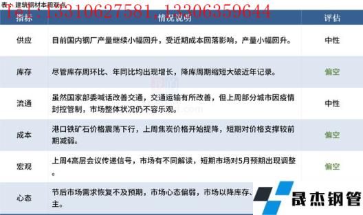 总体来看,市场受到了多重因素扰动,预期出现调整。此外,各地疫情反复发生对市场需求产生持续性影响,致使各地停工和复工交替发生,需求表现较差,市场缺少有效支撑。本周,市场博弈加强,在新的利好消息或者供需调整完成前,钢价将延续承压下行趋势。
