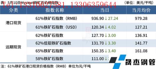 ◎ 5月10日,全国主港铁矿石成交88.30万吨,环比减25.8%;237家主流贸易商建材成交13.78万吨,环比减2.9%。