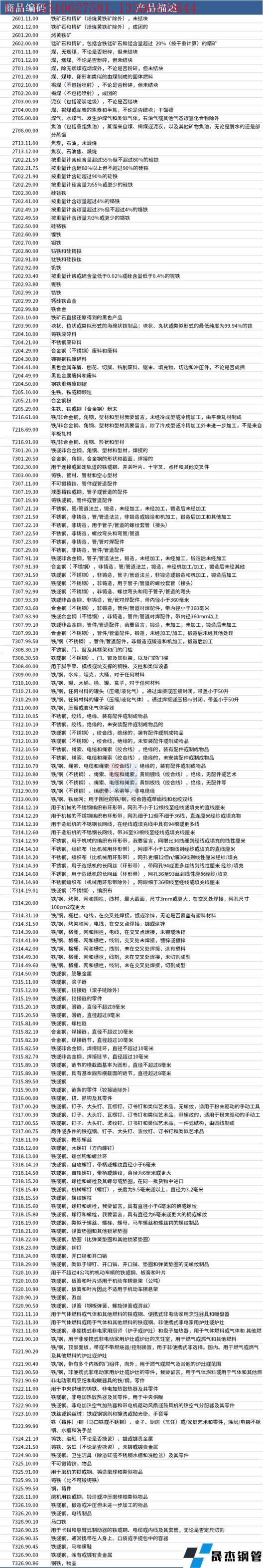 据不完全整理,美国征收中国产品关税的清单,涉及钢铁类产品如下: