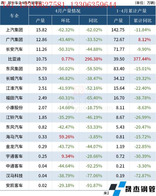 免责声明:本网站(山东聊城向日葵视频网站无缝钢管厂www.dianmore.com)刊载的“4月19家车企销量出炉,超九成同比大降”等均源于网络,版权归原作者所有,且仅代表原作者观点,本文所载信息仅供参考。转载仅为学习与交流之目的,如无意中侵犯您的合法权益,请及时联系删除。本网站刊登此篇文章并不意味着本站赞同其观点或证实其内容的真实性,向日葵视频网站不对其科学性、严肃性等作任何形式的保证。如果侵犯了您的版权,请尽快联系向日葵视频网站予以撤销,谢谢合作!