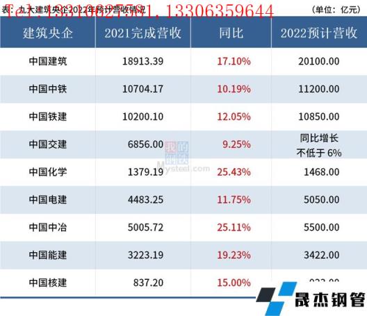 免责声明:本网站(山东聊城向日葵视频网站无缝钢管厂www.dianmore.com)刊载的“9大建筑央企预计2022年营收超6.6万亿元”等均源于网络,版权归原作者所有,且仅代表原作者观点,本文所载信息仅供参考。转载仅为学习与交流之目的,如无意中侵犯您的合法权益,请及时联系删除。本网站刊登此篇文章并不意味着本站赞同其观点或证实其内容的真实性,向日葵视频网站不对其科学性、严肃性等作任何形式的保证。如果侵犯了您的版权,请尽快联系向日葵视频网站予以撤销,谢谢合作!