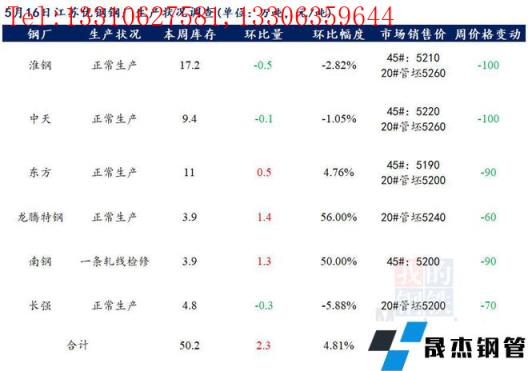江苏优特无缝向日葵色视频在线观看钢管厂家棒材总库存50.2万吨,较上周增加2.3万吨,环比增4.81%,较去年同期增加13.41万吨,同比增36.45%。