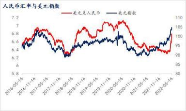 2022年3月,美联储宣布将基准利率上调25个基点,正式进入加息周期,5月更是宣布一次性加息50个基点,引起了全球资本市场的动荡,而美元作为全球避险资产,在此轮加息过程中不断走强,截至目前美元指数年内涨幅高达8.57%。相比来看,从今年4月中旬开始,人民币汇率却出现连续大贬值的走势,其中人民币离岸汇率从4月18日的6.372快速贬至5月16日的6.79,幅度达到6.3%,在岸汇率同期从6.363贬至5月12日的6.7994,幅度达到6.86%。同期欧元贬值8.2%,日元贬值12.88%,韩币贬值7.93%,而卢布年初至今对美元升值1.8%,澳元对美元微贬2.4%。从汇率上也可以看出,在全球通胀及美元走强背景下,能源原料出口国如俄罗斯、澳大利亚等国汇率相对坚挺,而产成品出口国如中国、日本、韩国等面临较大贬值压力。