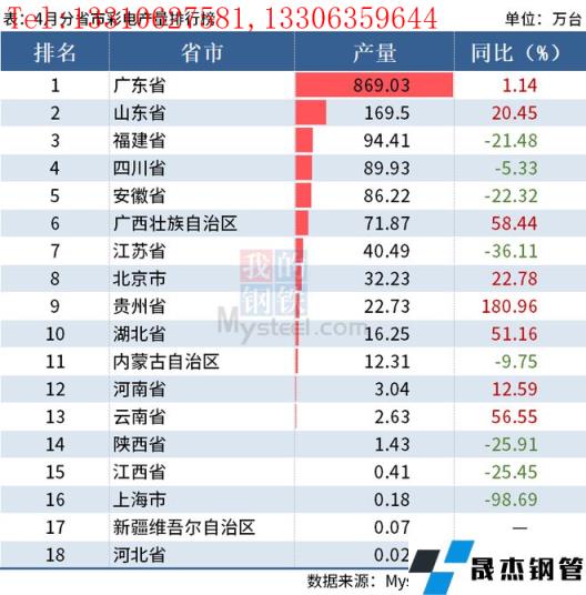 从分省市数据来看,4月广东、山东彩电产量超100万台,其中广东省以产量869.03万台排名第一,山东省以产量169.5万台排名第二,福建省产量94.41万台排名第三。