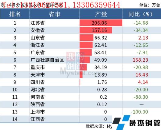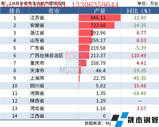 从分省市数据来看,4月江苏、安徽洗衣机产量超100万台,其中江苏省以产量206.06万台排名第一,安徽省产量157.16万台排名第二,山东省产量66.32万台排名第三。