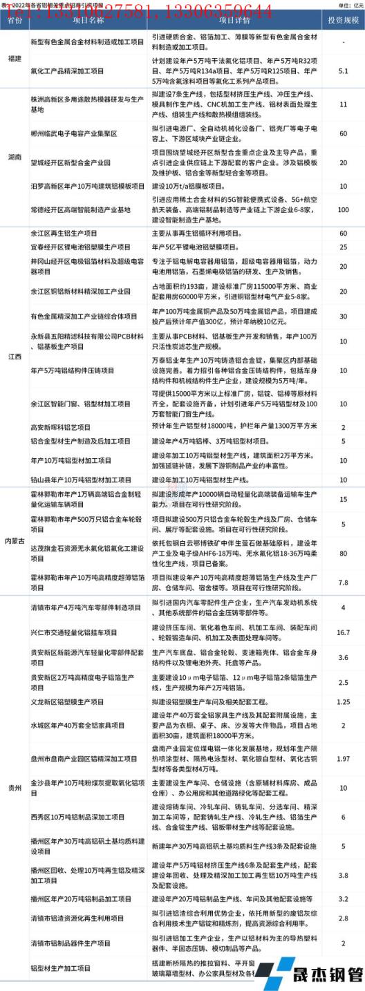 免责声明:本网站(山东聊城向日葵视频网站无缝钢管厂www.dianmore.com)刊载的“总规模近600亿,39个涉铝项目开始招商”等均源于网络,版权归原作者所有,且仅代表原作者观点,本文所载信息仅供参考。转载仅为学习与交流之目的,如无意中侵犯您的合法权益,请及时联系删除。本网站刊登此篇文章并不意味着本站赞同其观点或证实其内容的真实性,向日葵视频网站不对其科学性、严肃性等作任何形式的保证。如果侵犯了您的版权,请尽快联系向日葵视频网站予以撤销,谢谢合作!
