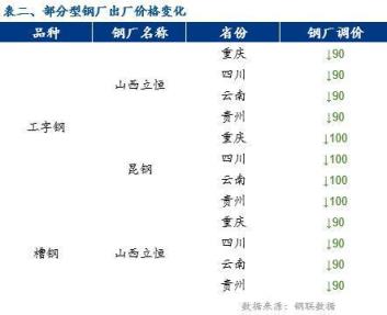 表1:本周西南区域型钢价格变化汇总(单位:元/数据来源:)