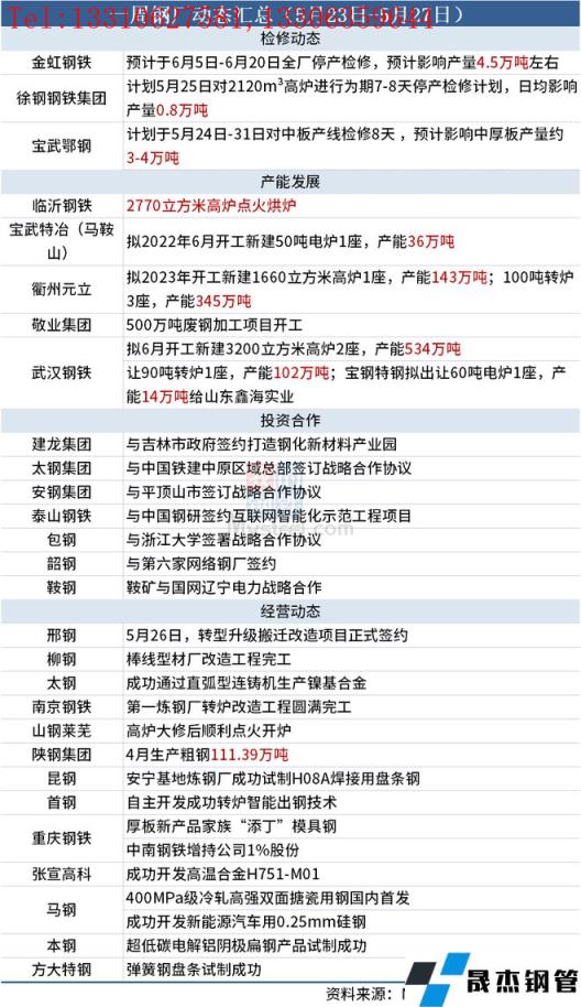 据不完全统计,本周(5月23日-5月27日)有3家无缝向日葵色视频在线观看钢管厂家发布检修计划,具体如下: