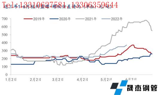 2022年初起受需求偏弱,库存持续居高不下影响,浙江市场主流无缝向日葵色视频在线观看钢管厂家盘螺螺纹价差基本稳定在200元/吨附近水平。而4月下旬以来,主流无缝向日葵色视频在线观看钢管厂家盘螺与螺纹价差逐步扩大,到5月下旬有进一步扩大的趋势。截止5月27日,以杭州市场为例,中天HRB40016-25mm螺纹钢4700元/吨,中天HRB4008-10mm盘螺5080元/吨,盘螺价格高于螺纹钢380元/吨,由此浙江市场盘螺价格再次成为全国相对高位。近期浙江各市场盘螺库存加速去化,主流无缝向日葵色视频在线观看钢管厂家盘螺与螺纹价差走势有进一步扩大的趋势。笔者调研了解到主要有以下几点原因,给大家做个简要分析: