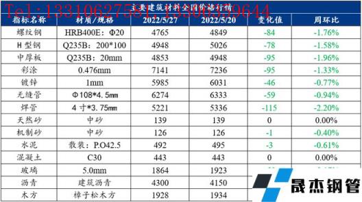 免责声明:本网站(山东聊城向日葵视频网站无缝钢管厂www.dianmore.com)刊载的“建筑原材料周报(5.23-5.27)”等均源于网络,版权归原作者所有,且仅代表原作者观点,本文所载信息仅供参考。转载仅为学习与交流之目的,如无意中侵犯您的合法权益,请及时联系删除。本网站刊登此篇文章并不意味着本站赞同其观点或证实其内容的真实性,向日葵视频网站不对其科学性、严肃性等作任何形式的保证。如果侵犯了您的版权,请尽快联系向日葵视频网站予以撤销,谢谢合作!