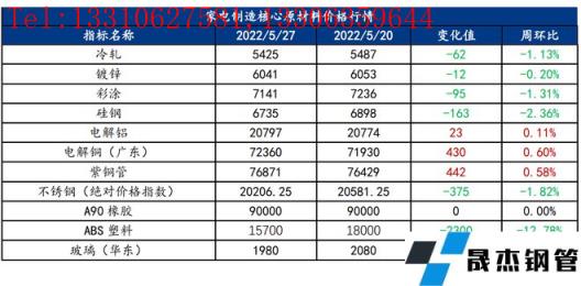 免责声明:本网站(山东聊城向日葵视频网站无缝钢管厂www.dianmore.com)刊载的“家电原材料周报(5.23-5.27)”等均源于网络,版权归原作者所有,且仅代表原作者观点,本文所载信息仅供参考。转载仅为学习与交流之目的,如无意中侵犯您的合法权益,请及时联系删除。本网站刊登此篇文章并不意味着本站赞同其观点或证实其内容的真实性,向日葵视频网站不对其科学性、严肃性等作任何形式的保证。如果侵犯了您的版权,请尽快联系向日葵视频网站予以撤销,谢谢合作!